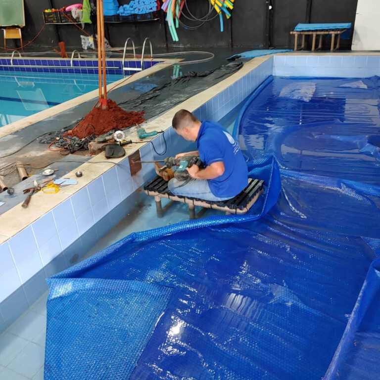A troca de azulejos em piscinas é o serviço de substituição de peças soltas, quebradas ou desgastadas, realizado com materiais resistentes à água para garantir a vedação e a estética da piscina. Pode ser feito com a piscina cheia, por meio de reparos subaquáticos.