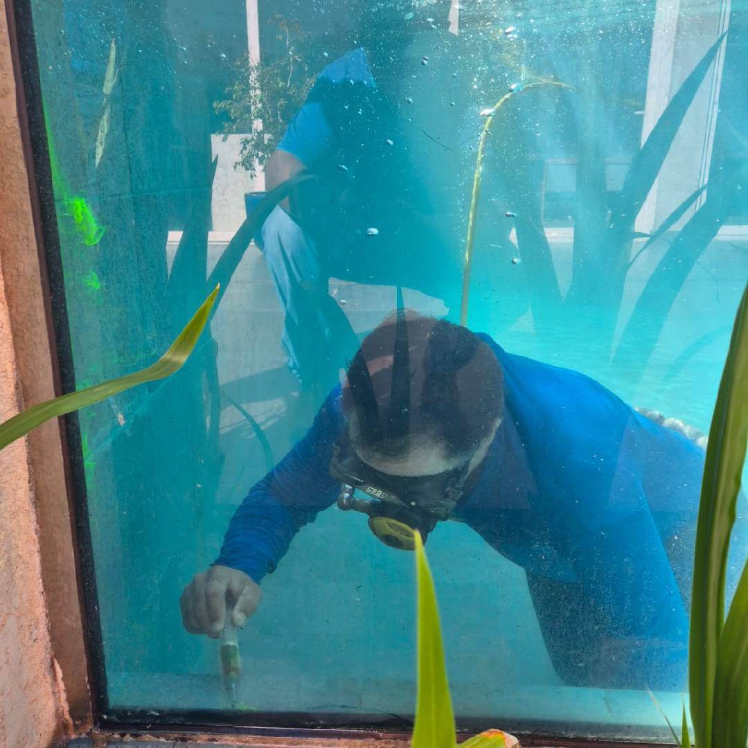 Consiste na realização de manutenções, consertos ou ajustes estruturais diretamente dentro da piscina, sem a necessidade de esvaziá-la.